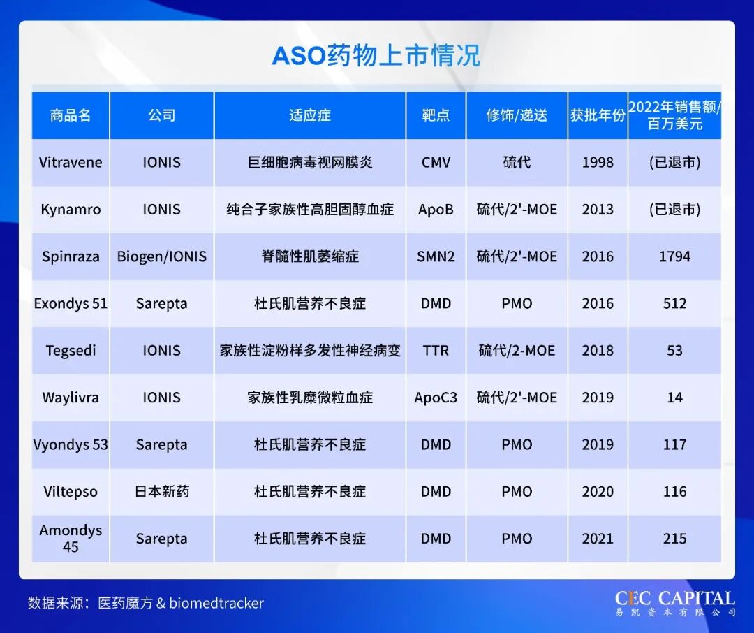 目前全球有9款ASO药物获批上市,其中全球首个用于治疗脊髓性肌萎缩症的药物Nusinersen 2022年全球销售额17.94亿美元,是目前销售额最高的小核酸药物。然而近期ASO药物状况频频,未来研发之路可能充满挑战,但Ionis目前多款药物都处在III期临床,特定的靶点或适应症有望突破重围。