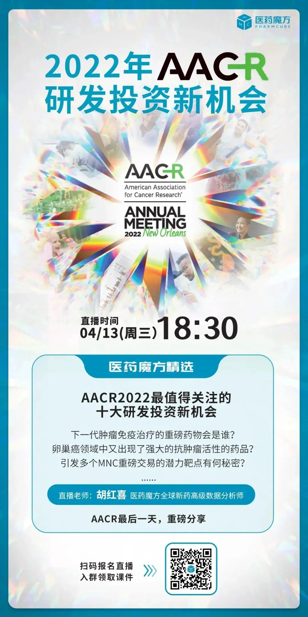 2022年4月13日 周三晚18:30,AACR会议的最后一天,医药魔方将为大家带来本届AACR看点的最终总结,欢迎扫码预约直播!