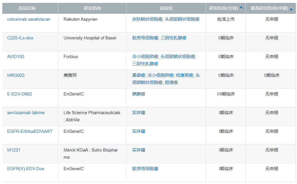 MRG003是乐普生物/上海美雅珂开发的一款靶向EGFR的ADC药物,其最大的临床优势是有望克服小分子EGFR TKI药物治疗而继发的多种获得性耐药突变,满足诸多EGFR TKI耐药患者的临床需求。此外,基于ADC药物的作用机制,EGFR ADC药物有望实现靶标的降解,对于EGFR突变阳性患者的早期治疗潜力也值得关注。MRG003目前处于II期阶段,也是国内唯一一款处于临床开发阶段的EGFR ADC药物,在国内同类药物中的开发进度可谓遥遥领先。