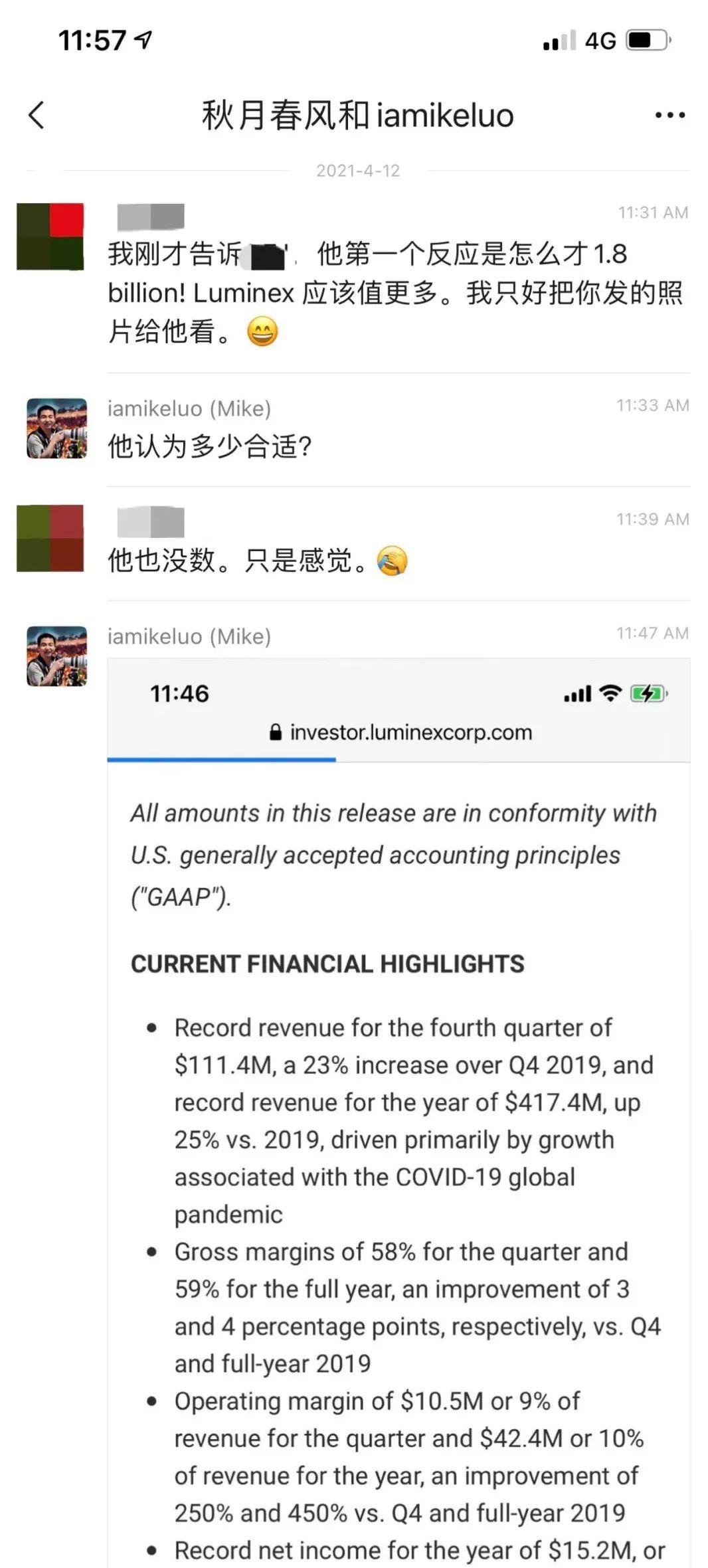 几年前星哥和就北京四正柏生物的罗总讨论过,我们都认为Luminex是个很好的标的,应该会被并购,只是不知道买家会是谁。我们猜中了开头,没有猜中结尾。