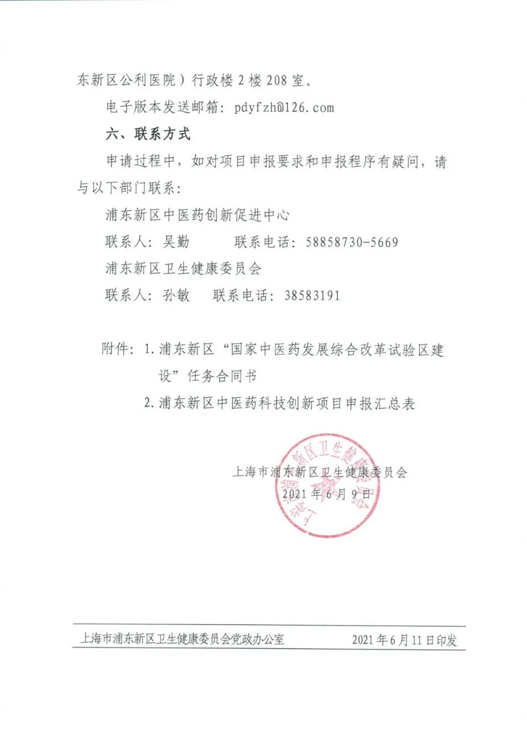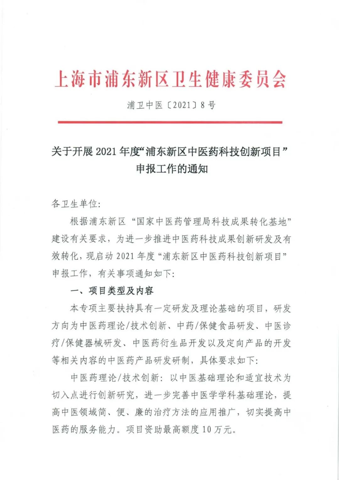 通知 | 关于开展2021年度“浦东新区中医药科技创新项目” 申报工作的通知
