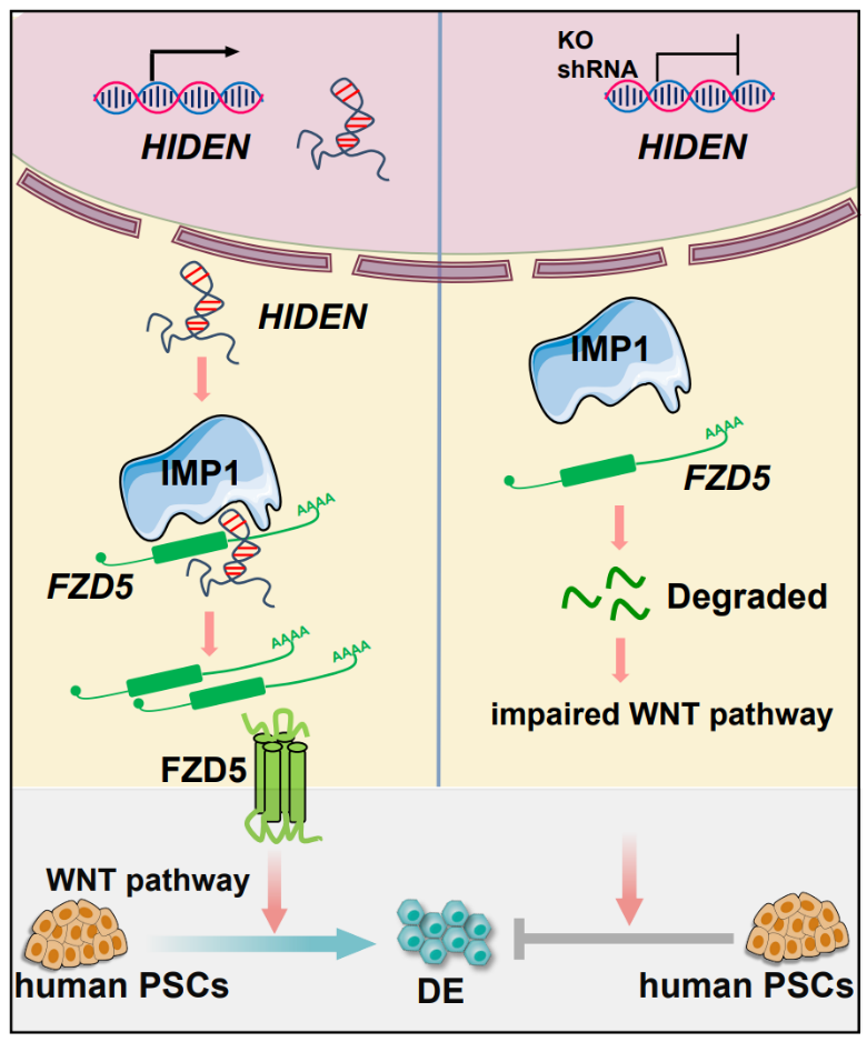 A desert lncRNA HIDEN regulates human endoderm differentiation via interacting with IMP1 and stabilizing FZD5 mRNA