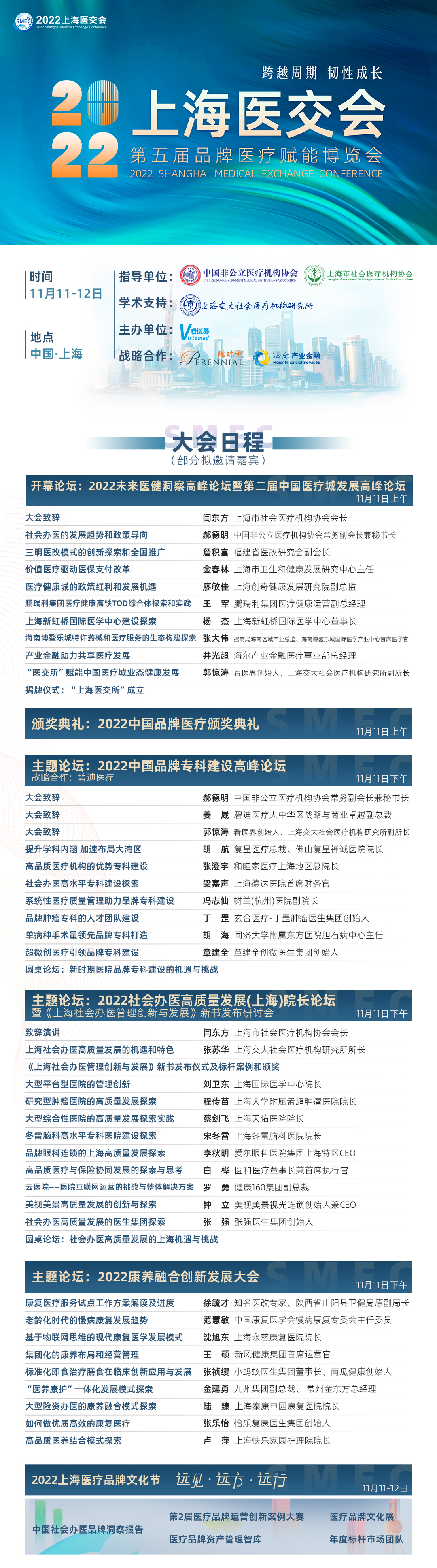 11月11-12日,年度医疗行业盛会2022上海医交会(第五届全国医交会-第五届医疗赋能博览会)将在上海隆重举行,大会同步举办2022全国医院运营大会暨现代医院院长上海峰会,论坛精彩纷呈,并设置品牌医疗城、医疗机构、医生集团、药械设备、智慧医疗、医疗赋能、共享医疗等展区,欢迎报名参会参展,洽谈合作。