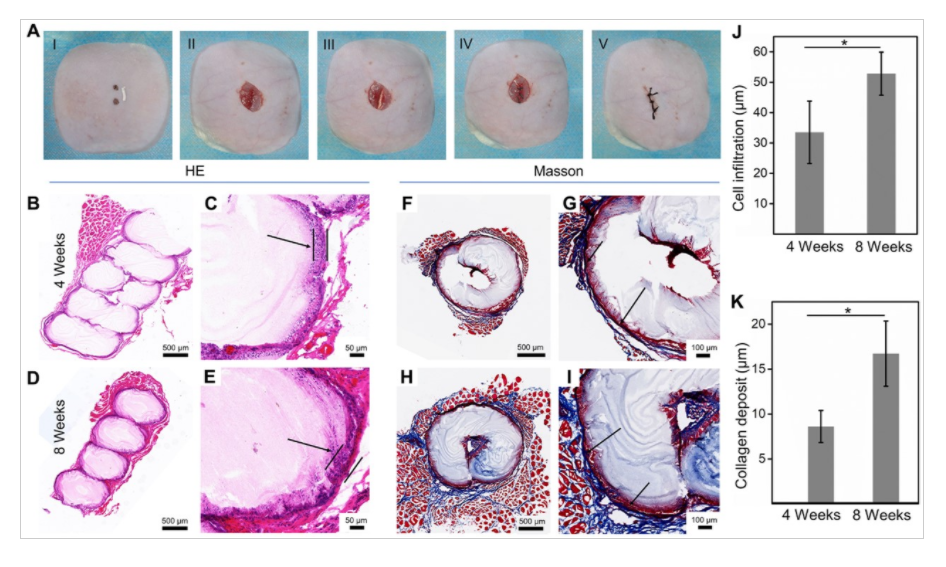 体内实验表明,对于细胞生长和组织形态的形成,该支架提供了一个稳定的结构和机械微环境。