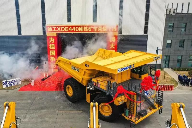 当天下线的XDE440刚性矿车,是徐工坚定推进高技术含量、高附加值、高可靠性、大吨位“三高一大”产品战略的最新成果,也是徐工根据五矿集团项目施工需求,面向南美、北美、澳大利亚等全球高端矿业市场定制开发的产品,满足载重量400公吨、年开机7300小时、设备可用率95%以上的行业最高运行标准。