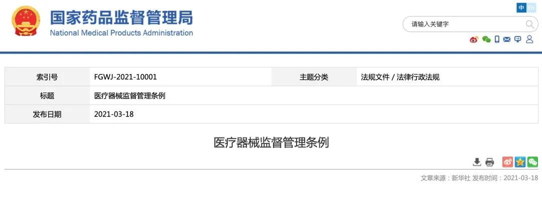 (2000年1月4日中华人民共和国国务院令第276号公布 2014年2月12日国务院第39次常务会议修订通过 根据2017年5月4日《国务院关于修改〈医疗器械监督管理条例〉的决定》修订 2020年12月21日国务院第119次常务会议修订通过)