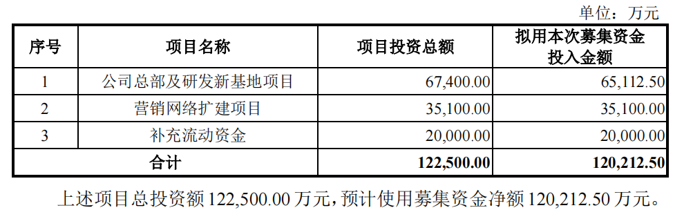 根据南京诺唯赞生物科技招股书披露的信息,此次拟公开发行不超过4001万股,募集资金12.21亿人民币,主要用于以下三个方面:公司总部及研发新基地项目,营销网络扩建项目,补充流动资金。