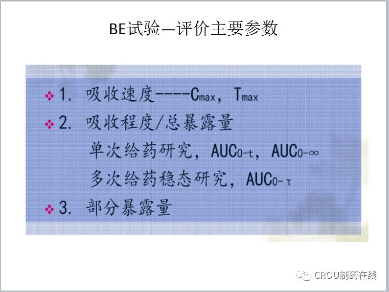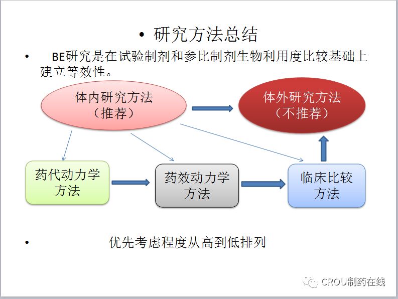 通常推荐采用单次给药药代动力学研究方法评价生物等效性,因为单次给药在评价药物释放的速度和程度方面比多次给药稳态药代研究的方法敏感,更易发现制剂释药行为的差异。