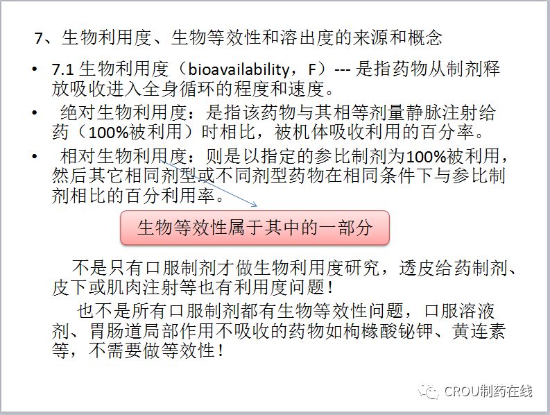 7、生物利用度、生物等效性和溶出度的来源和概念