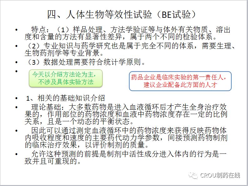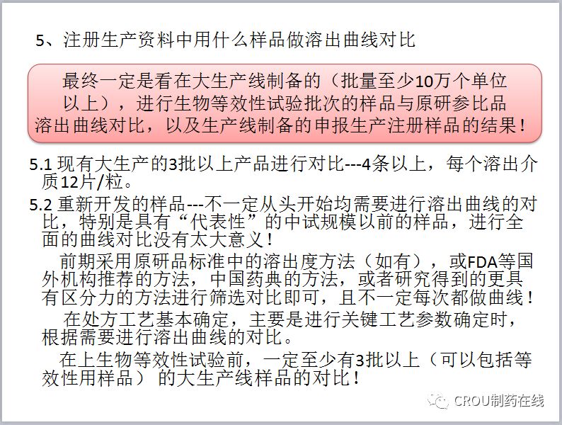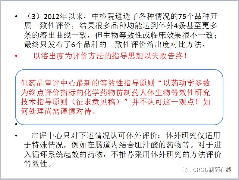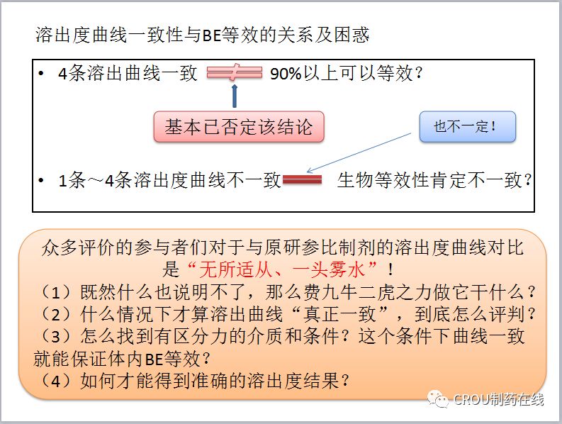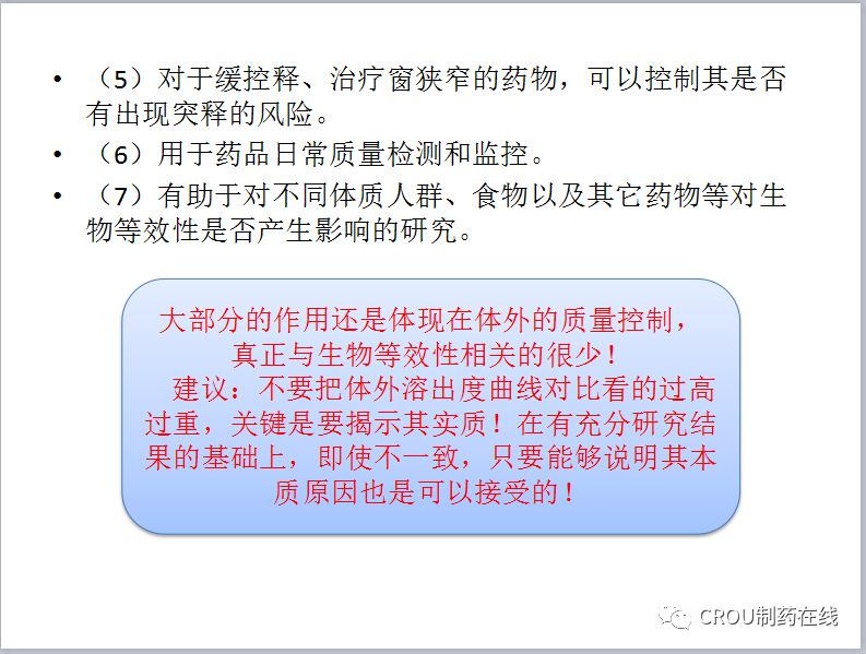 ④普通制剂改为缓释,体外溶出不可能一致,应该以BE(证明其缓释效果)和临床试验共同评价(证明临床优势)。