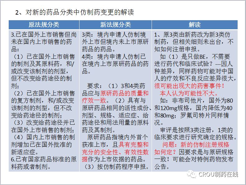 (1)原3类改为新3类注册要增加BE试验,首先要去办理对照药的一次性进口,且原3类要求的临床试验不太可能取消,比原3类要求更高!