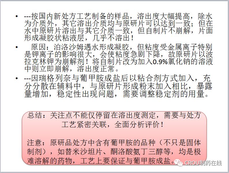 ---国内仿制单位大多采用将原辅料直接混合湿法制粒的工艺,因原料药未与葡甲胺成盐,溶出度远低于原研片,曲线对比不一致!