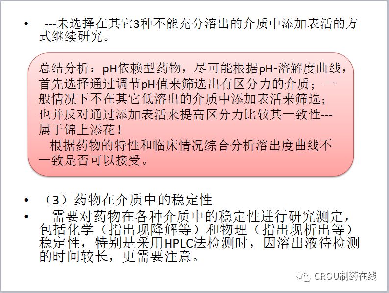 因口服后必须先经过胃中,故在酸性介质中的溶出是质量评价的关键,其它介质的溶出无太大意义!