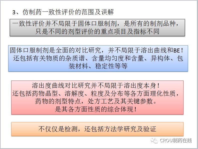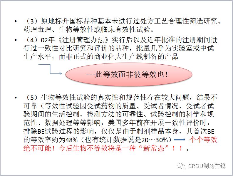 与仿制药一致性评价的标准不一致,是要求“药学方面有特色、临床要有优势”!难度大幅增高,且更为复杂;原则上最终不能以BE,而应该以临床试验来评价!