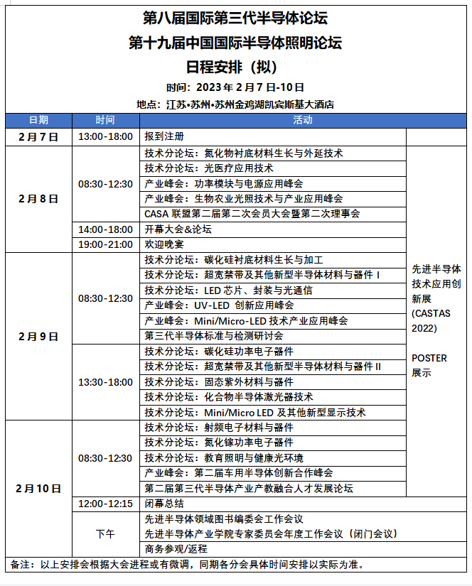 开年盛会 | 第八届国际第三代半导体论坛&第十九届中国国际半导体照明论坛将于2023年2月7-10日在苏州召开
