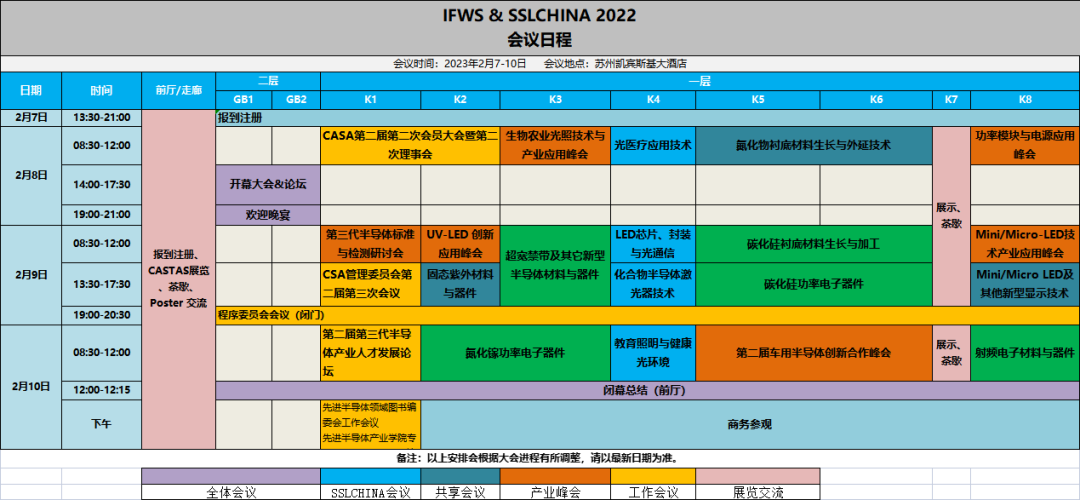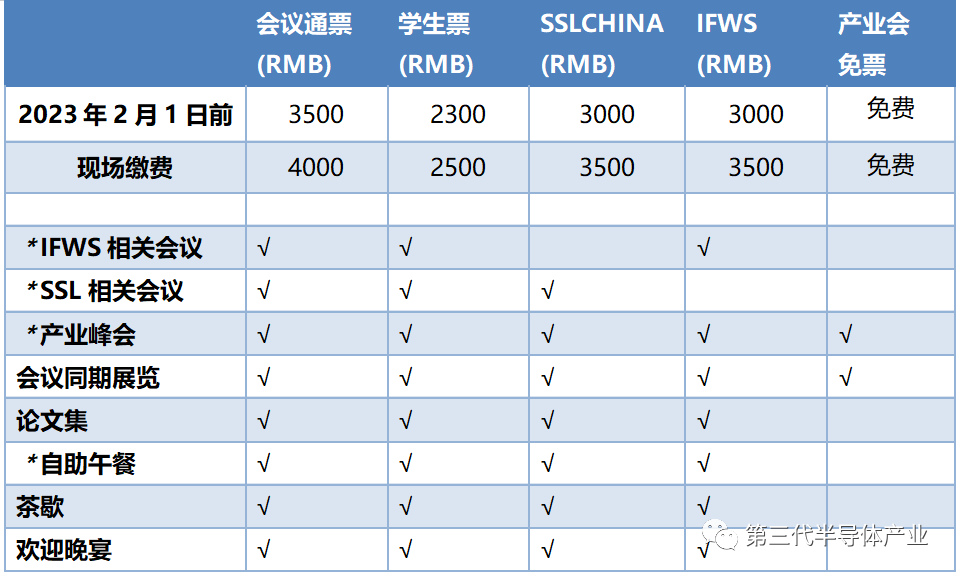 *IFWS相关会议包括:开幕大会,碳化硅衬底材料生长与加工,碳化硅功率电子材料与器件,氮化物衬底材料生长与外延技术,氮化镓功率电子材料与器件,固态紫外材料与器件,化合物半导体激光器技术,Mini/Micro LED及其他新型显示技术,射频电子材料与器件,超宽禁带及其他新型半导体材料与器件,闭幕大会。