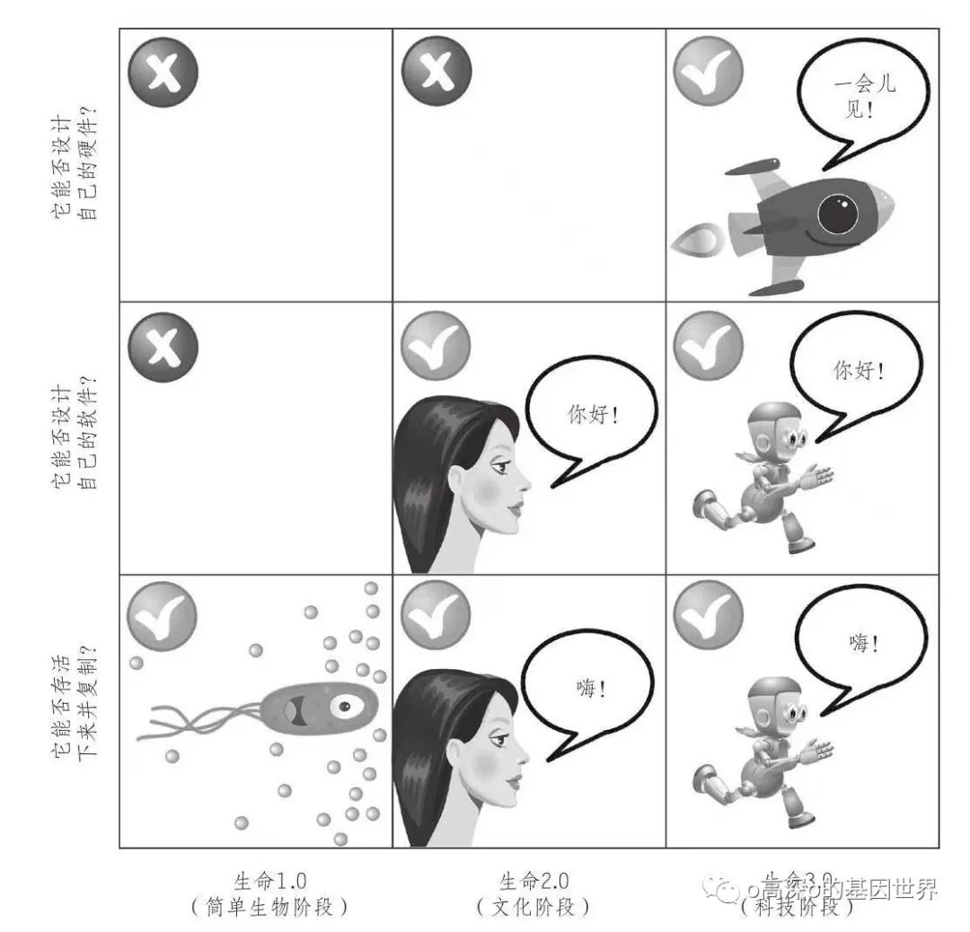 在此基础上给出了生命1.0、2.0和3.0的定义: