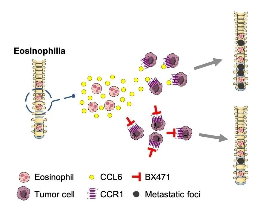 嗜酸性粒细胞通过CCL6-CCR1轴促进肿瘤转移的分子机制示意图