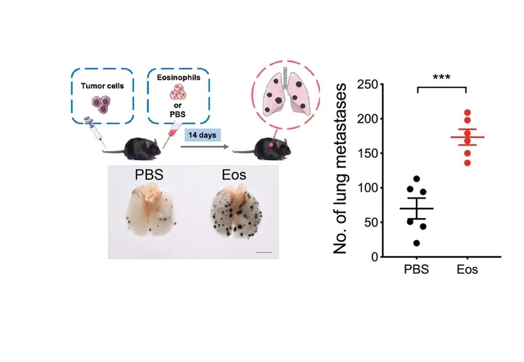 肿瘤转移是威胁病人生命的重要危险因素,也是医学界一直以来致力攻克的难题之一。近日,浙江省呼吸疾病诊治及研究重点实验室、浙江大学医学院附属第二医院呼吸与危重症医学科沈华浩与应颂敏教授团队发现嗜酸性粒细胞在肿瘤转移中扮演着幕后推手的角色,这项研究将为肿瘤患者的治疗提供潜在靶点。