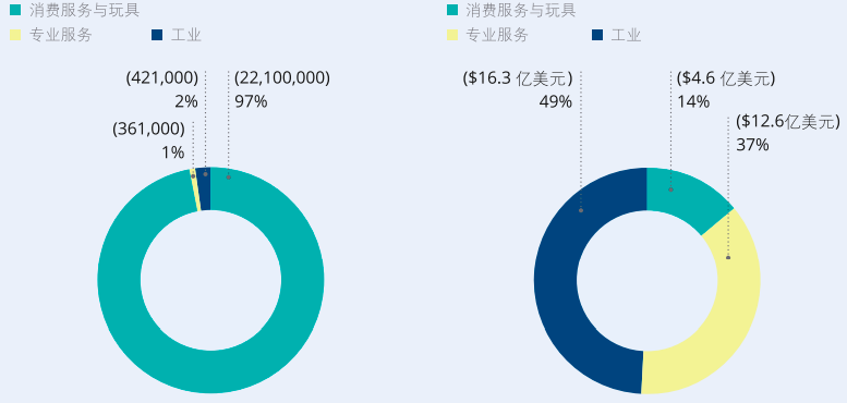 根据Deloitte报告显示,在中国各领域机器人2019年年销量比重中,消费服务与玩具机器人占97%,工业机器人占2%,而专业服务机器人仅仅占年度总销量的1%。