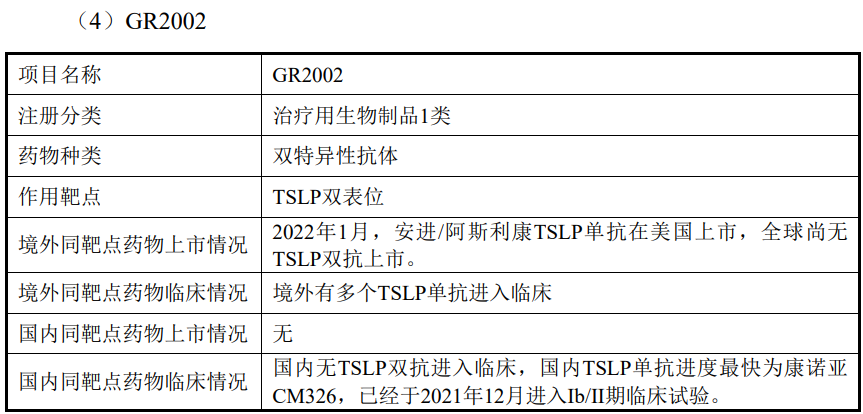 4月24日,生物城企业—智翔金泰GR2002注射液获批临床,用于治疗哮喘。GR2002是智翔金泰自主研发的抗TSLP双特异性抗体,也是全球首个获批临床的TSLP双表位双抗。