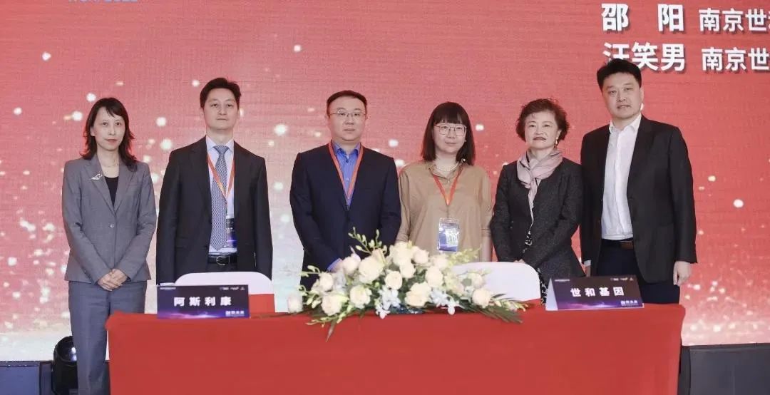 从左往右:阿斯利康中国副总裁、医学事务部负责人杨海英,阿斯利康中国总经理赖明隆,世和基因创始人、首席执行官邵阳,世和基因联合创始人、首席技术官汪笑男,阿斯利康中国肿瘤业务部总经理殷敏,世和基因联合创始人、首席运营官赵忞超