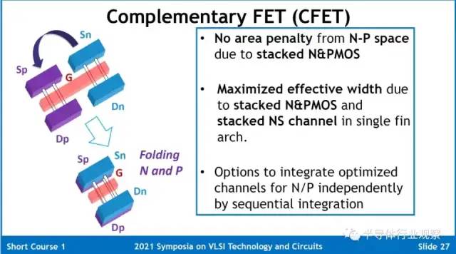 除了具有 FS 的 HNS,还有CFET(Complementary FET ),后者堆叠 nFET 和 pFET,从而无需水平 np 间距。