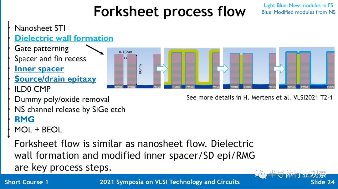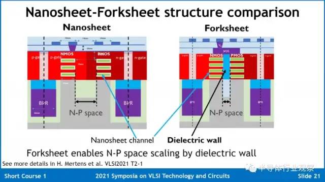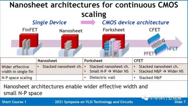 图 11. 水平 Nanosheet/Forksheet 架构比较。