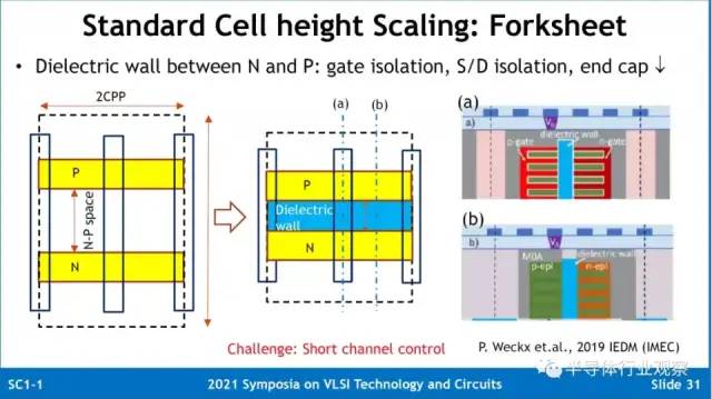 Imec 引入了一个称为 Forksheet (FS) 的概念,其中在 nFET 和 pFET 之间放置了一个介电层,从而减少了 np 间距,从而形成了更紧凑的标准单元,见图 4。