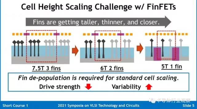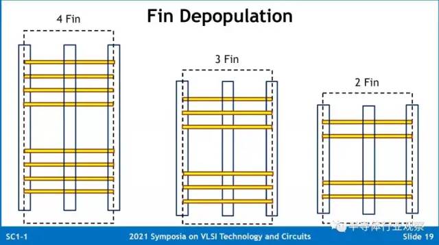 随着标准cell高度的降低,每个器件的鳍片数量必须减少(鳍片减少),见图 2。