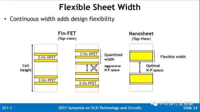 从 FinFET 过渡到 HNS 提供了几个优势,大的 Weff,改进的短沟道效应,这意味着更短的 Lg 和更好的设计灵活性,因为能够改变片宽,见图 9。