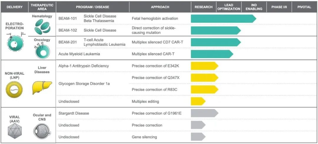 目前,Beam的研发管线按照递送技术,可分为电穿孔、LNP、AAV载体三类。