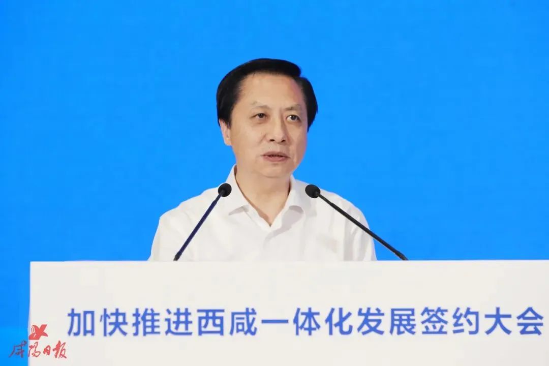 咸阳市与西咸新区加快推进一体化发展签约大会的圆满举行,是我们深入贯彻习近平总书记来陕考察重要讲话重要指示的生动实践,是坚决落实省第十四次党代会精神和省委省政府决策部署的具体行动,对加快西安—咸阳一体化进程具有重要里程碑意义。长期以来,双方顺应时代潮流、着眼共建共享、深化改革探索,携手迈出了一体化发展的坚实步伐。这次签约大会,既展示了同心同向同行的宝贵结晶,更形成了互融互促互进的工作导引,是我们深化一体化合作的共同纲领。