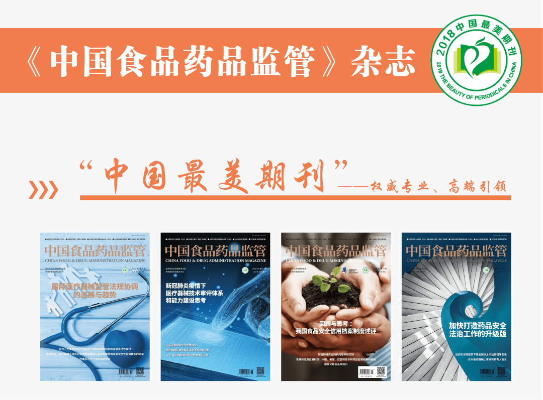 《中国食品药品监管》杂志作为国家药品监督管理局机关刊,创刊于1998年,目前是中国健康传媒集团主办的科学性、专业性核心期刊;是研究和宣传中国食品药品监管政策、建立科学监管理念、提高监管水平、服务我国食药产业健康发展的重要平台。