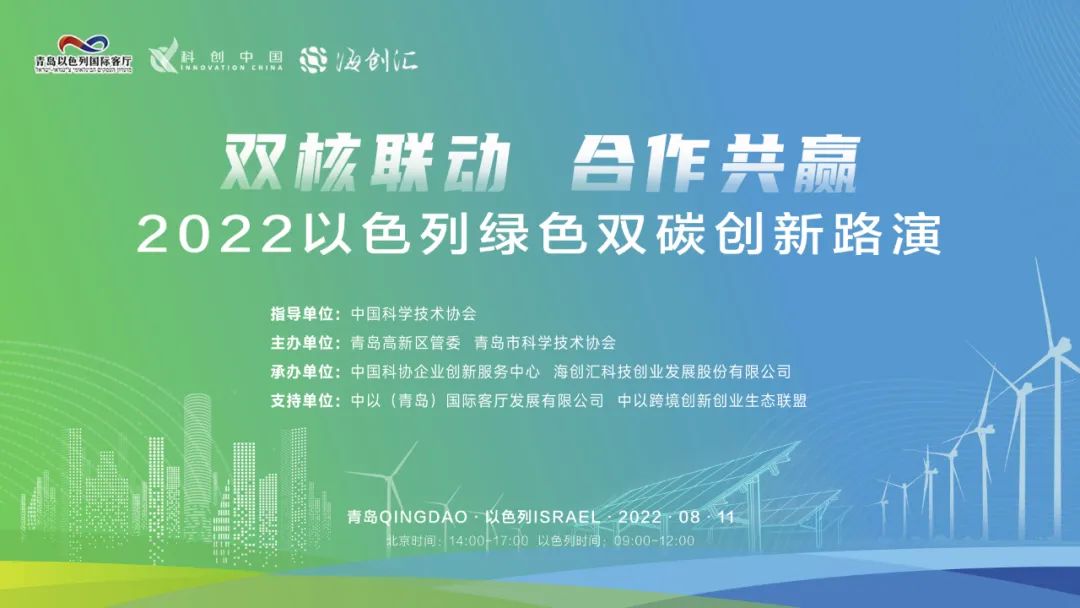 8月11日,“科创中国”技术路演中以专场——2022以色列绿色双碳创新路演活动在青岛高新区青岛以色列国际客厅成功举办。本次路演由青岛高新区管委、青岛市科学技术协会主办,中国科协企业创新服务中心、海创汇承办。