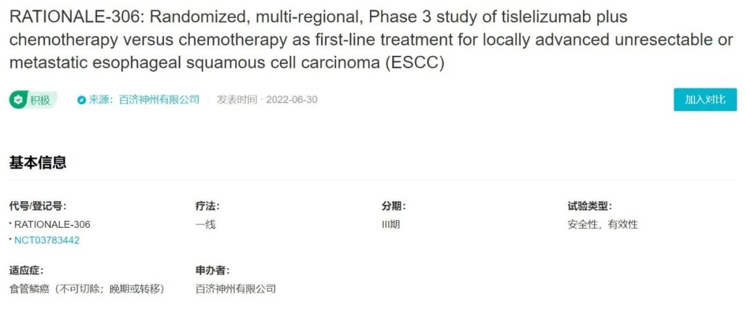 替雷利珠单抗联合化疗一线治疗局部晚期的不可切除或转移性食管鳞癌的 III 期注册临床 RATIONALE-306 研究数据,在今年 6 月 30 日的 ESMO-WCGI 会议上已经公布