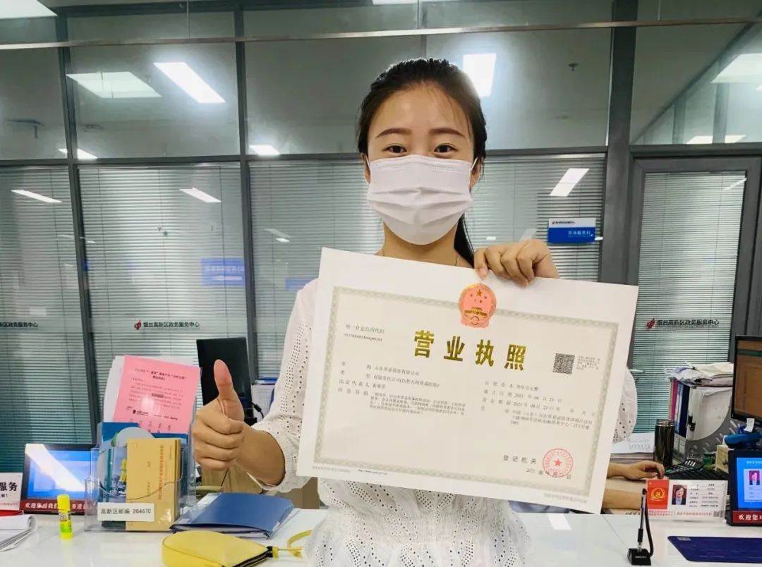8月20日,张女士得知,在烟台高新区政务大厅就可直接打印出住所登记地在济南高新区的营业执照。8月23日,张女士来到烟台高新区政务大厅申请设立地址在济南高新区的企业。两地工作人员随即组建“济、烟高新区商事登记跨域通办联络专班”,双方通过视频连线实时沟通办事进展、解决难题。烟台高新区协助企业网上申报,济南高新区启用商事登记预审专班负责实时指导,在企业完成认证签名后,即刻核准通过进入打印执照环节。全过程仅用了半个小时,申请人就顺利拿到了济南高新区的营业执照。