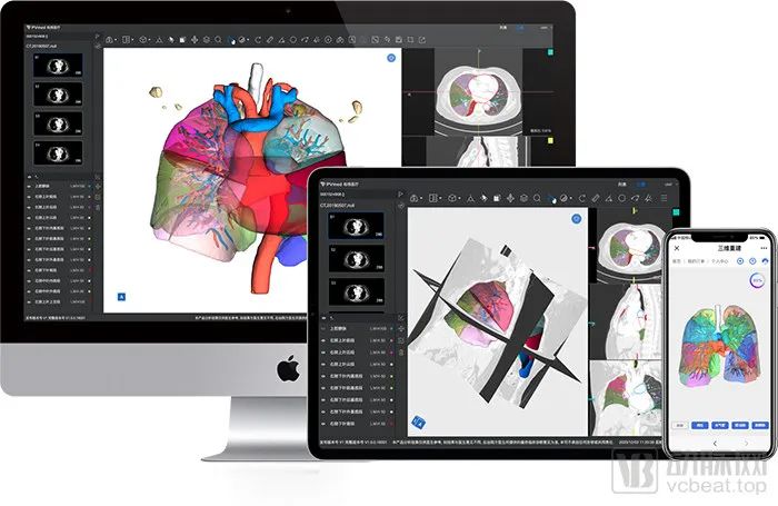 目前,PV-iCAS智能手术术前规划系统提供的服务已经销售到十几个省市的头部医院,可对CT影像中的肺部疾病实现自动检测、定位和智能量化分析,同时为胸腹外科手术提供智能的、精准的器官三维可视化以及模拟规划工具, 从而提高临床治疗实践的安全性,推动精准外科手术达到新的高度。