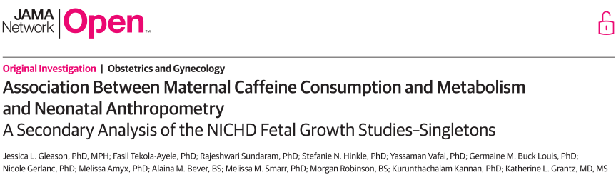 该研究由美国国立卫生研究院 (NIH) 尤尼斯・肯尼迪・施莱佛国家儿童健康与人类发展研究所 (Eunice Kennedy Shriver National Institute of Child Health and Human Development) 内部人口健康研究部门的医学博士 Katherine L. Grantz 领导,以 “Association Between Maternal Caffeine Consumption and Metabolism and Neonatal Anthropometry” 为题,发表在 JAMA Network Open 上。