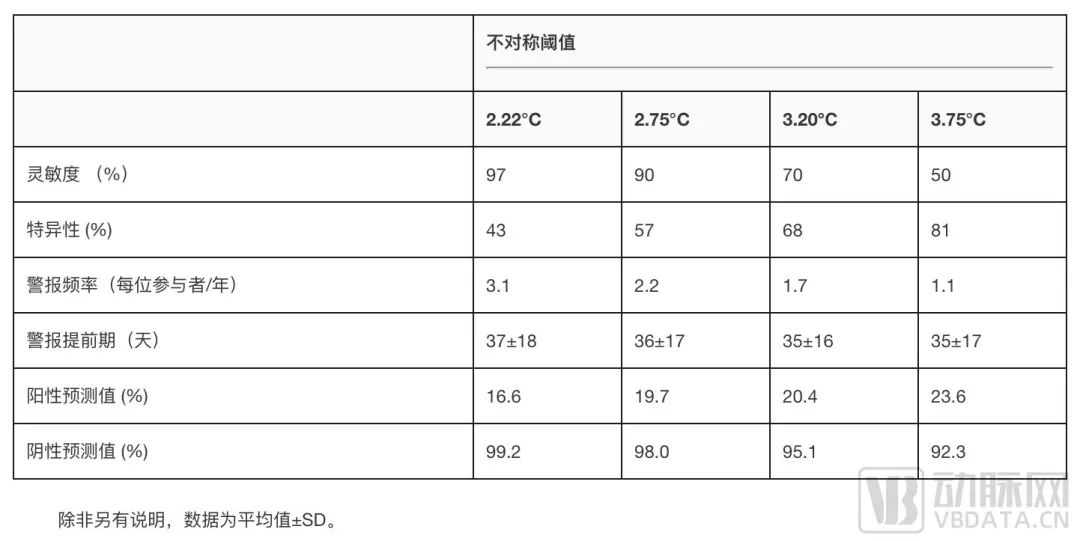 根据大量的临床数据统计,Jon和David发现可以通过足底温度的不对称阈值预测DFU的发生情况。当双脚温度不对称阈值为2.22°C时,SmartMat™能够在临床表现前5周检测到97%的DFU。