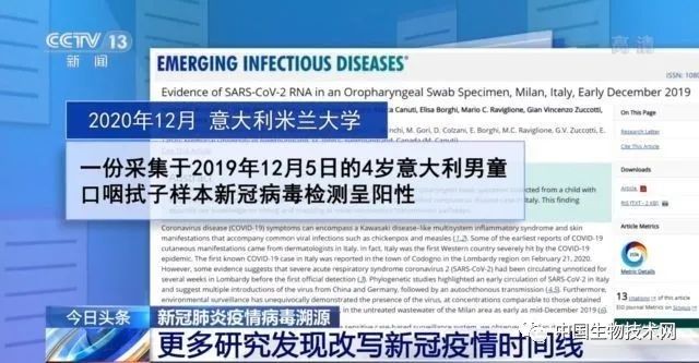 去年12月,米兰大学另一组研究人员在美国《新型传染病杂志》上报告说,一份采集于2019年12月5日的4岁男童口咽拭子样本新冠病毒检测呈阳性。该男童在那之前一段时间没有外出旅行史。