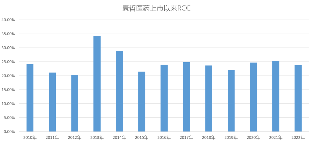现在市场都说要高质量发展,问题是什么是高质量发展呢?最终体现在财务上就是高ROE。上市以来,过去13年康哲的ROE都在20%的中枢波动,在这个时间跨度下,肯定是连续做对了多个重大决策才有可能实现这种持续性,相对稳定的盈利能力也保障了研发资源的持续投入。
