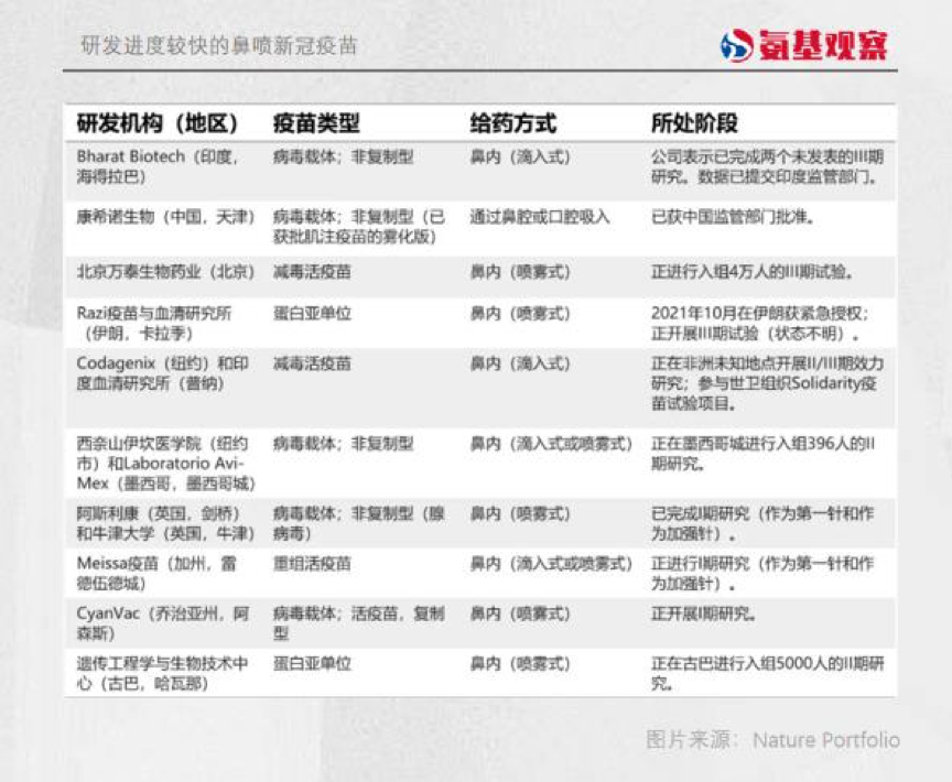 根据 Airfinity公司数据,截至今年9月,全球已经有近100种黏膜新冠疫苗正在开发中,其中约20种已经进入临床。大战,一触即发。