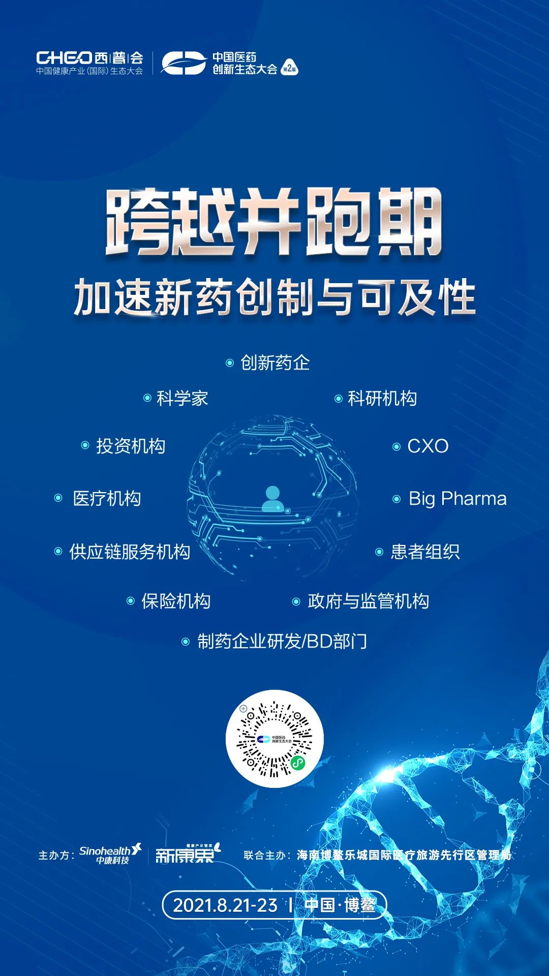 2021中国医药创新生态大会CPIE将于2021年8月21-23在海南博鳌举办,本届大会主题:跨越并跑期——加速新药创制与可及性。欢迎您在后台评论区与我们互动,更欢迎您亲临海南博鳌的话题现场,请关注文末海报,进行扫码报名。