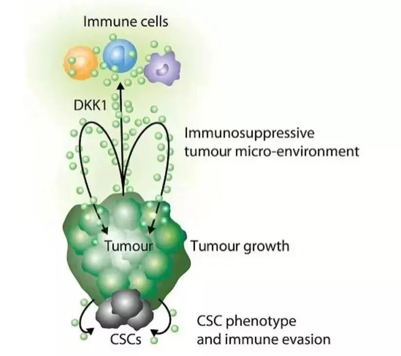 DKK1全称是dickkopf相关蛋白1,许多种类的癌症中能够观察到该基因表达水平升高。该蛋白能够调节Wnt/β-连环蛋白信号通路和PI3K/AKT信号通路,在肿瘤细胞信号传导和维持肿瘤抑制微环境方面具有重要的重用。
