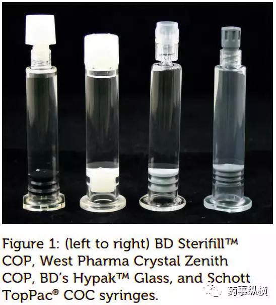 法规对生物制品的要求推动了预充针的创新。虽然I型玻璃仍然是注射器常用的材料,但塑料注射器也越来越受欢迎,包括环烯烃聚合物(COP)、环烯烃共聚物(COC)、聚丙烯(PP)和聚碳酸酯(PC)。在日本,50%的注射器是塑料的。聚合物注射器无菌、随时可用、具有玻璃外观(图1),并且耐磨损。