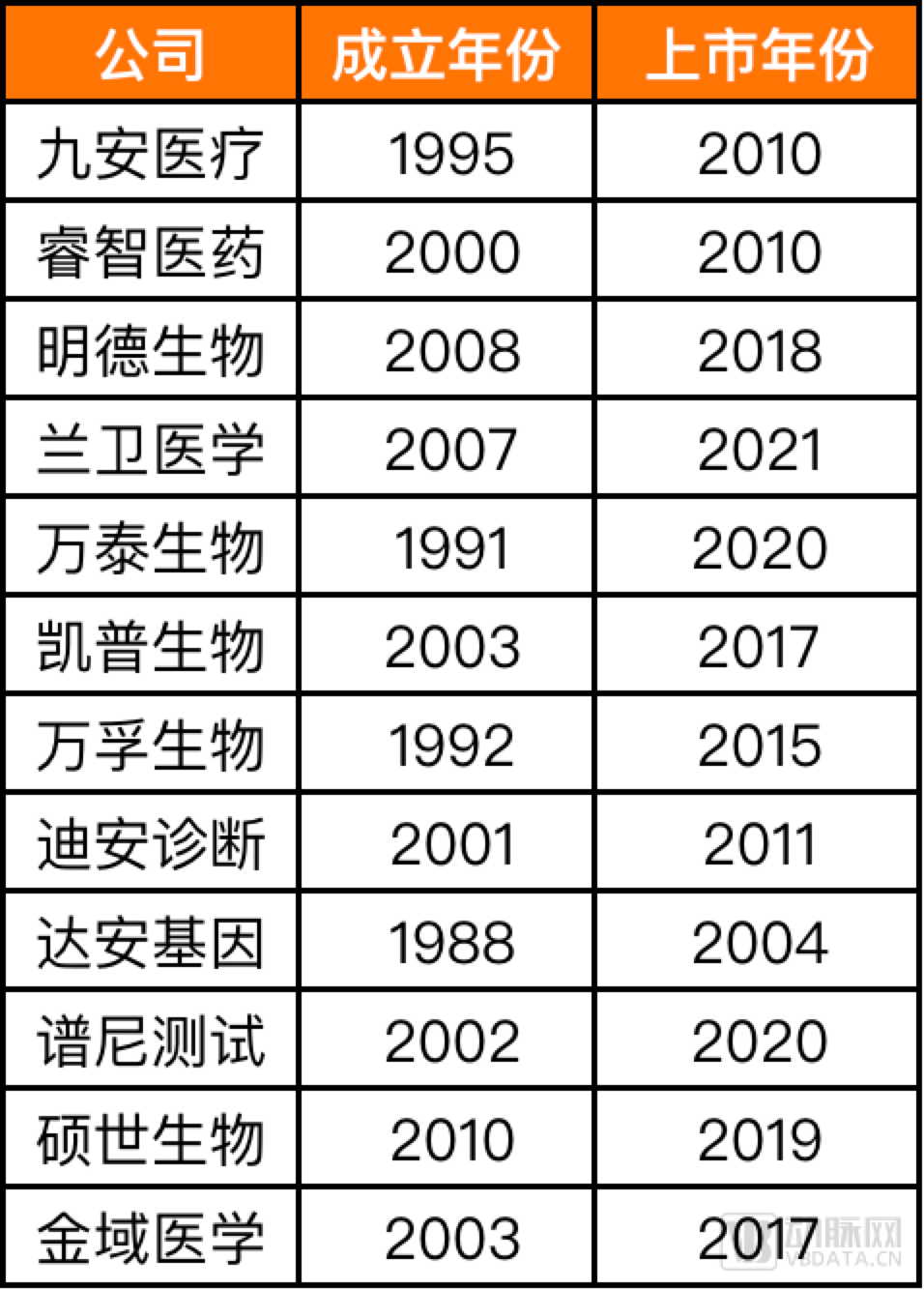 我们也简单整理了主板上市的“涉核酸检测企业”,从成立时间来看,都是较为老牌的检测试剂公司,从上市时间来看,绝大多数公司都是在新冠疫情前就已上市,并非借东风大赚一把后包装上市: