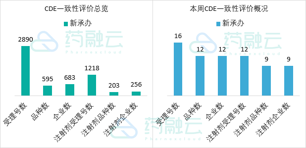 截止2021年04月16日,CDE共承办一致性受理号2890个(683家企业的595个品种);其中1246个受理号(330个品种)通过一致性评价。本周(2021.04.09-2021.04.15)新承办16个受理号,包括12个品种,9款注射剂。(不含视同通过)