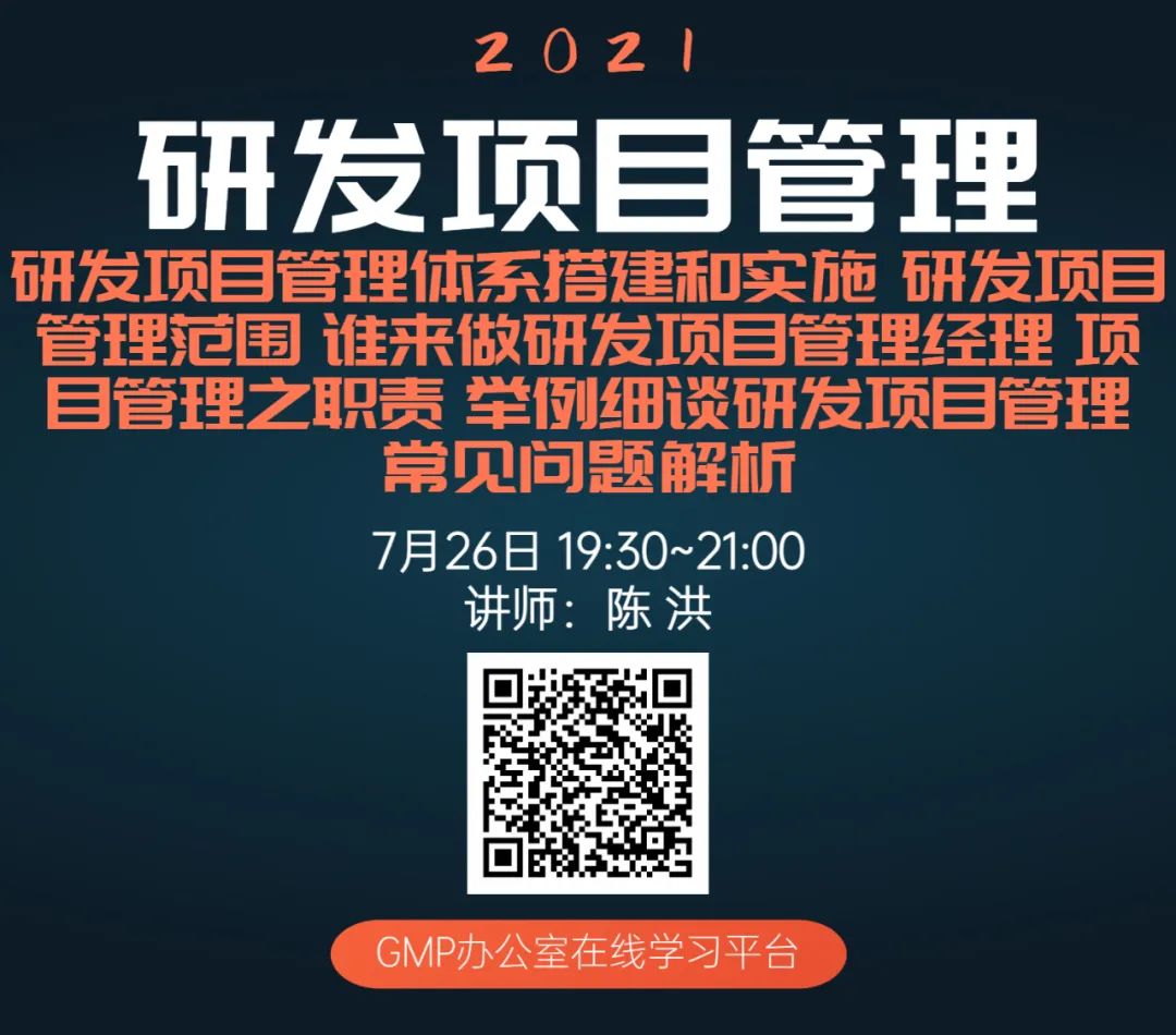 以下为《研发项目管理:如何搭建和实施研发项目管理体系、管理范围、谁做研发项目管理经理、职责分工、案例及常见问题解析!》直播培训课程,直播将于今晚19:30开始!扫描图中二维码可进入。