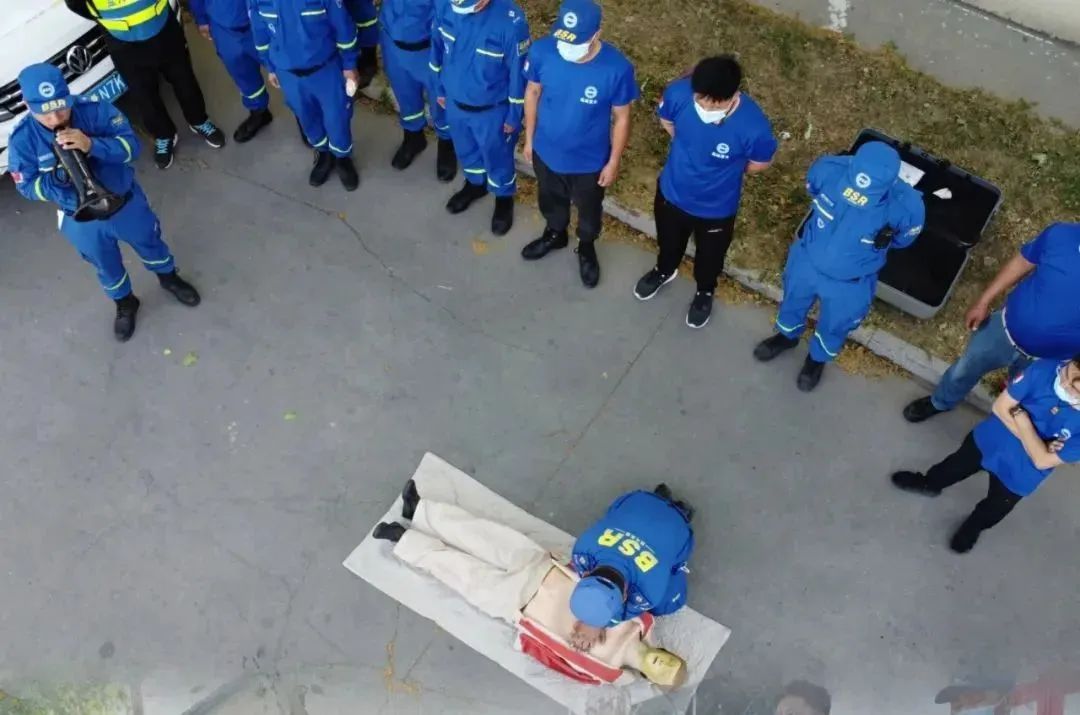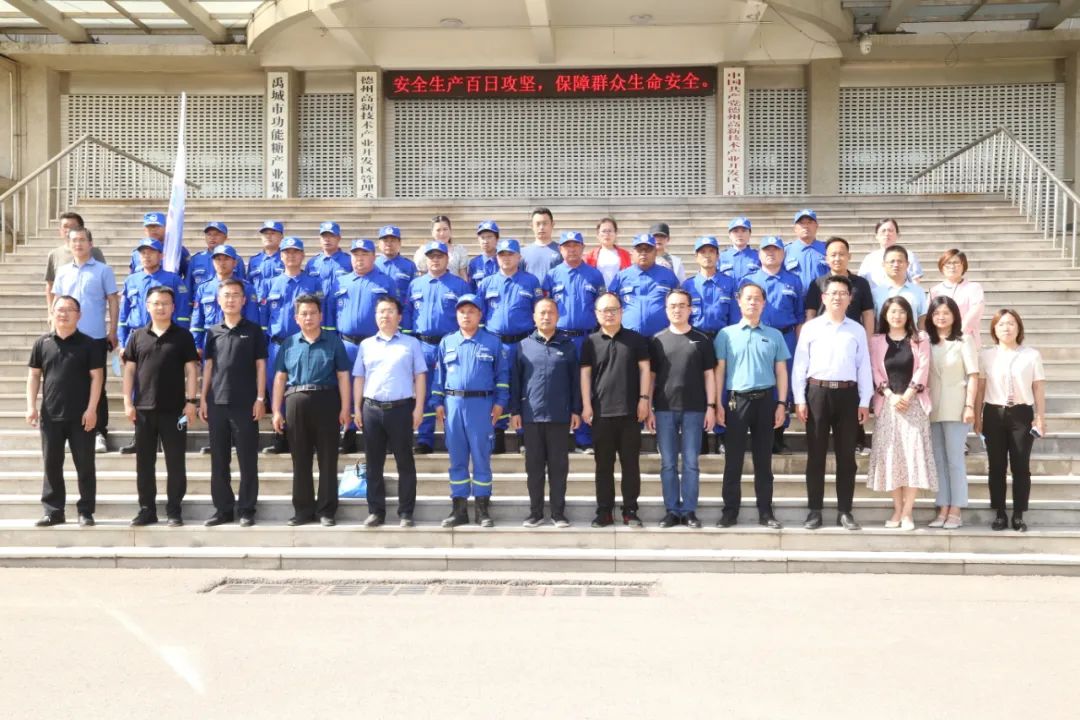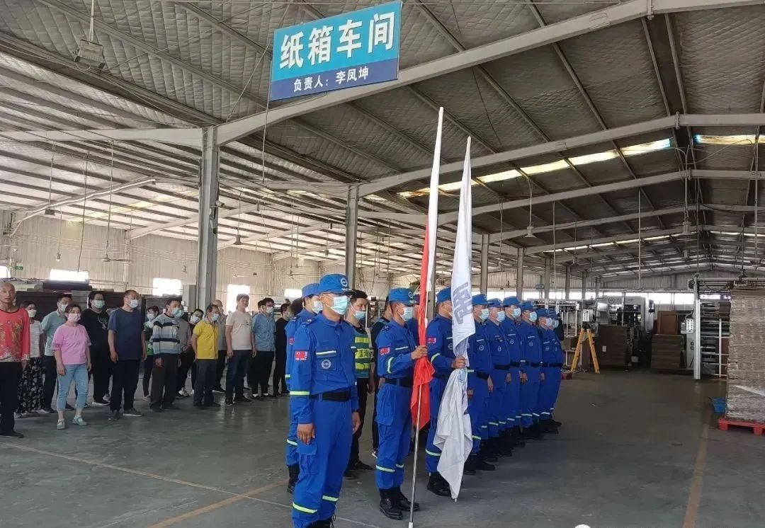 授旗仪式举办前,高新区、禹城蓝天救援队共同组织开展了企业应急救援演练。